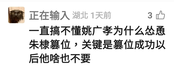 以上是我的答案,所以姚廣孝壓寶這段時間動手,抓住亂世的時機,達到重分配的目的,【天下大亂,形勢大好】的概念。