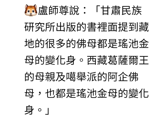 2025.11.16 師尊開示,提到同門拿甘肅民族學院一篇研究,說瑤池金母在藏密各種變化身,例如:阿企佛母.格薩爾王的母親。