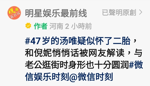 休息時間,看影音號,推播【47歲湯唯疑似懷二胎】,好吧~哈哈,可能提醒我不要太早放棄。