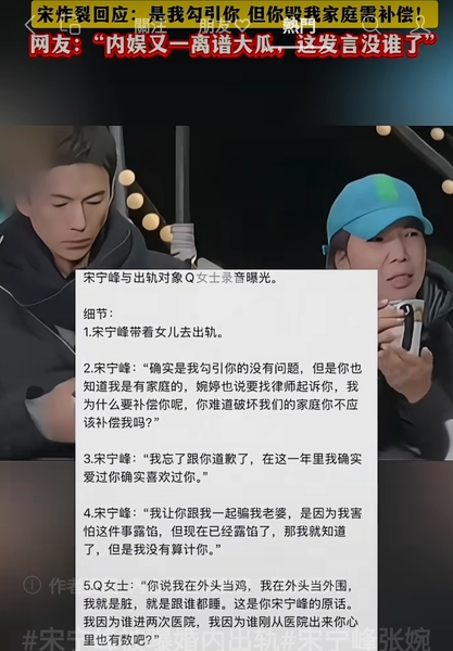 當時的我就覺得男生也有問題,果然2026年宋寧峰被爆外遇,印證我的判斷:
