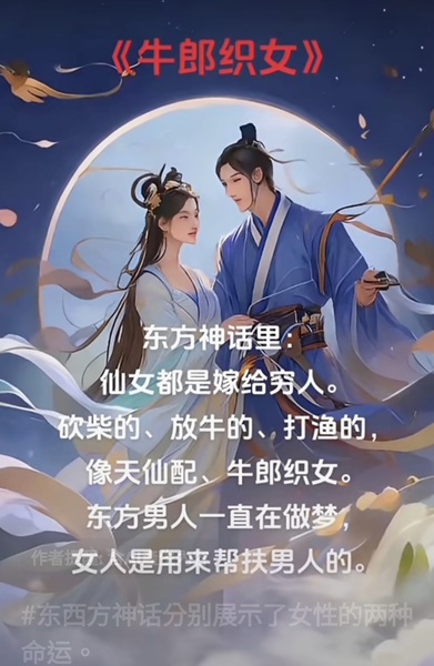 中國神話,仙女嫁給窮人,牛郎織女.董永與七仙女。