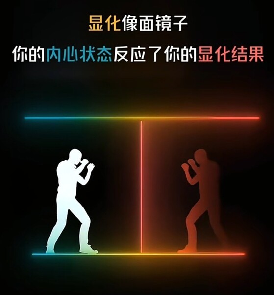 因為你的內在信念.能量+感覺,投射出去,等於你經歷的實相。如附圖(上)。