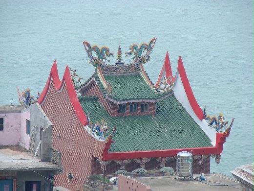 其實大家仔細看,就會發現廟的形式與台灣島的廟都不一樣,台灣島的廟是傳統式的閩南式建築,而馬祖則是較像福州廟宇的形式,而且都是小小間的,沒所謂的山門或是幾進幾進的建築,大部分的廟宇都只有一小間,所有的神都再同一間,依序排好,而且廟的屋頂與台灣廟宇的屋頂不同,會因為是文神還是武神,而使廟的屋頂不同,像是武神(例如媽祖娘娘就是),就是火牆,較尖,而文神的線條較柔和.