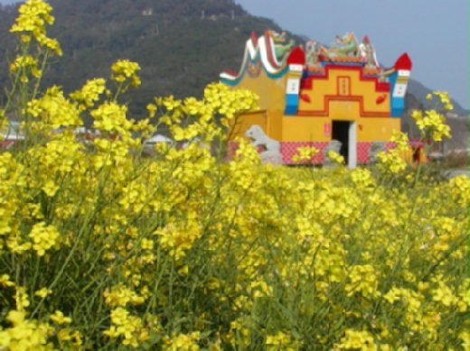 如果大家想去北竿玩的話,可以推薦芹壁的天后宮和坂里的小天后宮,芹壁的天后宮是北竿最大的媽祖廟了,旁邊還有鐵甲將軍的廟,鐵甲將軍就是青蛙神,是什麼由來不是很清楚,反正是守護媽祖娘娘的神明就對了.而坂里的小天后宮的牆面是黃的,聽說在旁邊黃花開的時候(應該是油菜花吧),黃色的廟宇立再黃色的花海中,非常漂亮,尤其旁邊又是坂里的沙灘,更是美麗,不過如果是有廟必拜的人化(就像我啦!),那也是非常好的地方,那邊的廟會多到讓你拜不完.