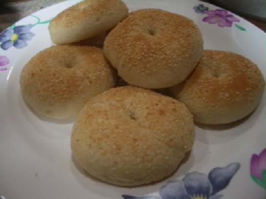 附註:貝果的由來----傳說波蘭國王從土耳其入侵者手中解救了維也納,心存感激的麵包師,做出馬鐙型的麵包紀念勇敢的波蘭士兵,這種麵包因為中間有一個大洞,德國方言就稱它為beugel(圓圈或花環),後來猶太人用意弟緒語稱它為beygel,最後陰錯陽差變成今天的貝果(bagel).