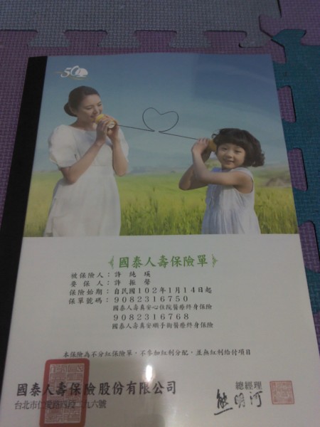 後來輾轉透過學弟的告知,國泰人壽有所謂業務專員的制度,我可以輕易維持銷售保險的業務員資格,當我身邊親友剛好有需求時,我就可以客觀的規劃~~將近三年了,除了自己家人的保單外,這是第一份銷售出去的正式保單,真是有夠混...