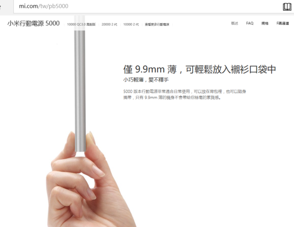 小米5000mAh行動電源:超薄的隨身行動電源!(開箱)