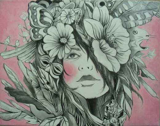 《Just beautify》的發想點來自於想創作出「美」的事物,畫面中的單一人物上面添加了以植物和動物為主的裝飾物,臉頰微微暈紅,眼睛注視著遠方,整體形象映襯在粉紅色暈染的背景上,顯示畫中人物溫柔、浪漫的感覺。如果仔細的要去辨別是男性或是女性,還真的無法一眼看出。