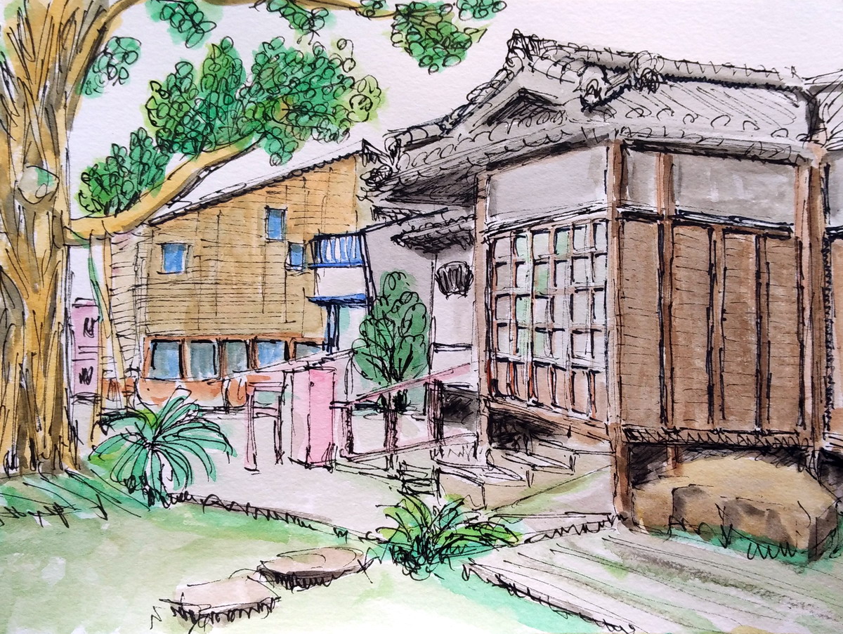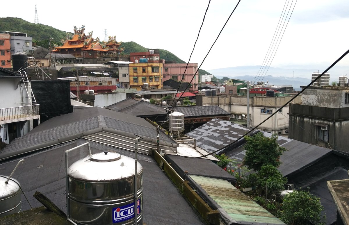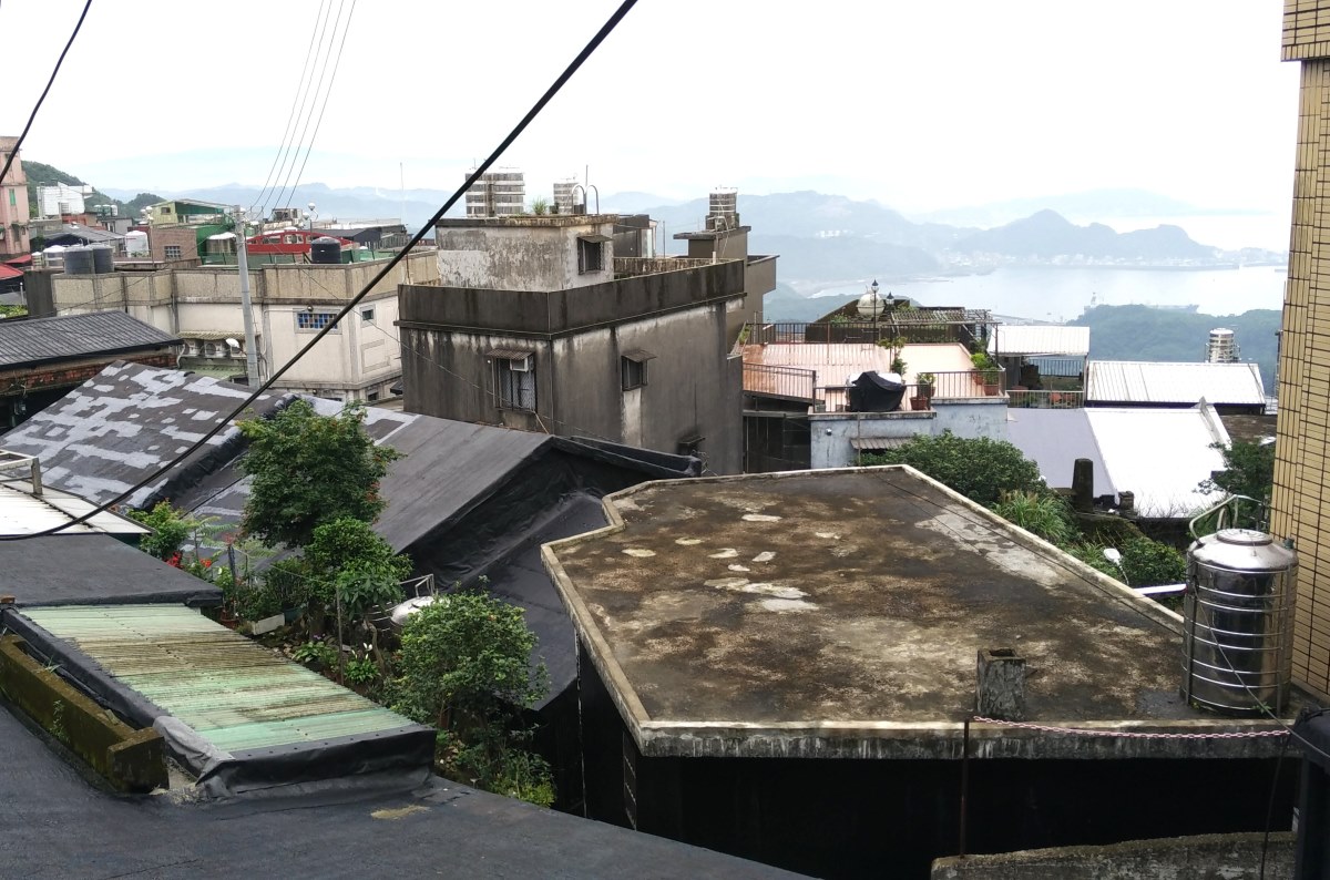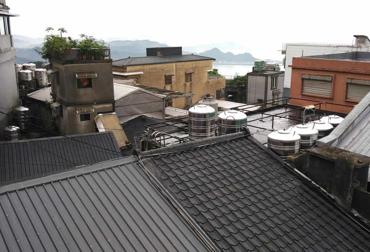 你可以去金瓜石畫,以前的九份屋頂是整片黑色柏油的油毛氈.