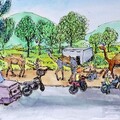 再來就是速寫打稿, 主景配角陪襯依序展開