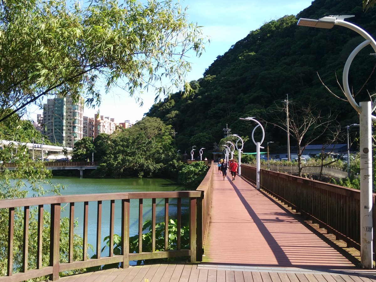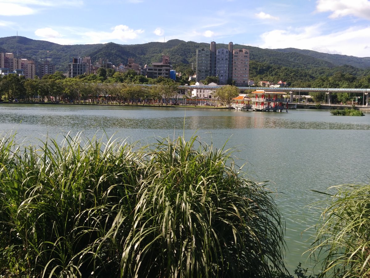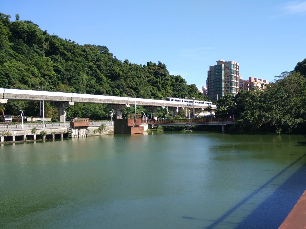 文湖線捷運就繞著湖邊走, 不時的有列車穿過.