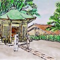 印像中新竹市只有南寮漁港,沒想到在香山有一個不小的漁港,只是不出名,所以來的人很少,就像大多數的魚港一樣,安靜得像貓在睡覺,畢竟極少人是靠海維生的,一般人到大海邊也只有吹吹風,看看風景的,所以沒有必要整天待在海邊,漁港裡漁船較少,大塑膠管組成的排筏倒是比較多,應該都是在近海捕魚的,中午時分太陽好大,沒人打擾,只有各式各樣的排筏隨著海風搖搖搖晃晃,很快的也把畫畫完了,該去吃飯了。