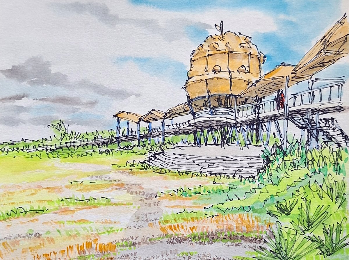 台東鳥巢公園位於台東市海濱公園,是座結合地景藝術與休憩設施的公園。公園內最著名的地標就是「向陽樹」,是一座由波浪木編結構打造的巨型藝術橋。向陽樹象徵著台東大海的波浪及連綿絕不絕的山脈,而向陽樹兩側延伸的步道則代表生命力的延續。