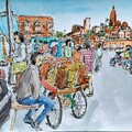 街頭速寫的過程中,不僅要注意畫面的構圖,更要捕捉那一瞬間的感覺和氛圍。在鹽水月津灣畔,這些感覺往往來自於每一個細節。老街上的小巷,古老的屋簷,市場上熙熙攘攘的人群,每一個細節都值得細細品味與描繪。