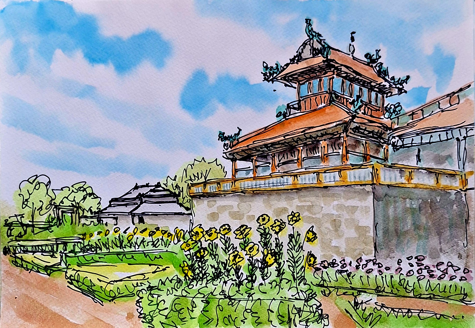 午後,陽光灑滿皇城,紅磚牆映照出溫暖的色彩。微風帶來淡淡的木香,混合著河水的清涼氣息。站在高台上遠眺,順化的街道與芳草綠樹交錯,古城與現代交融,彷彿在訴說著順化的故事——既是歷史的見證者,也是時代的參與者。