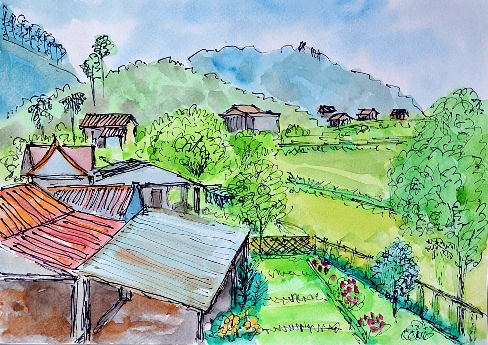 這裏是越南順化富山田野,很漂亮,所以畫下來。