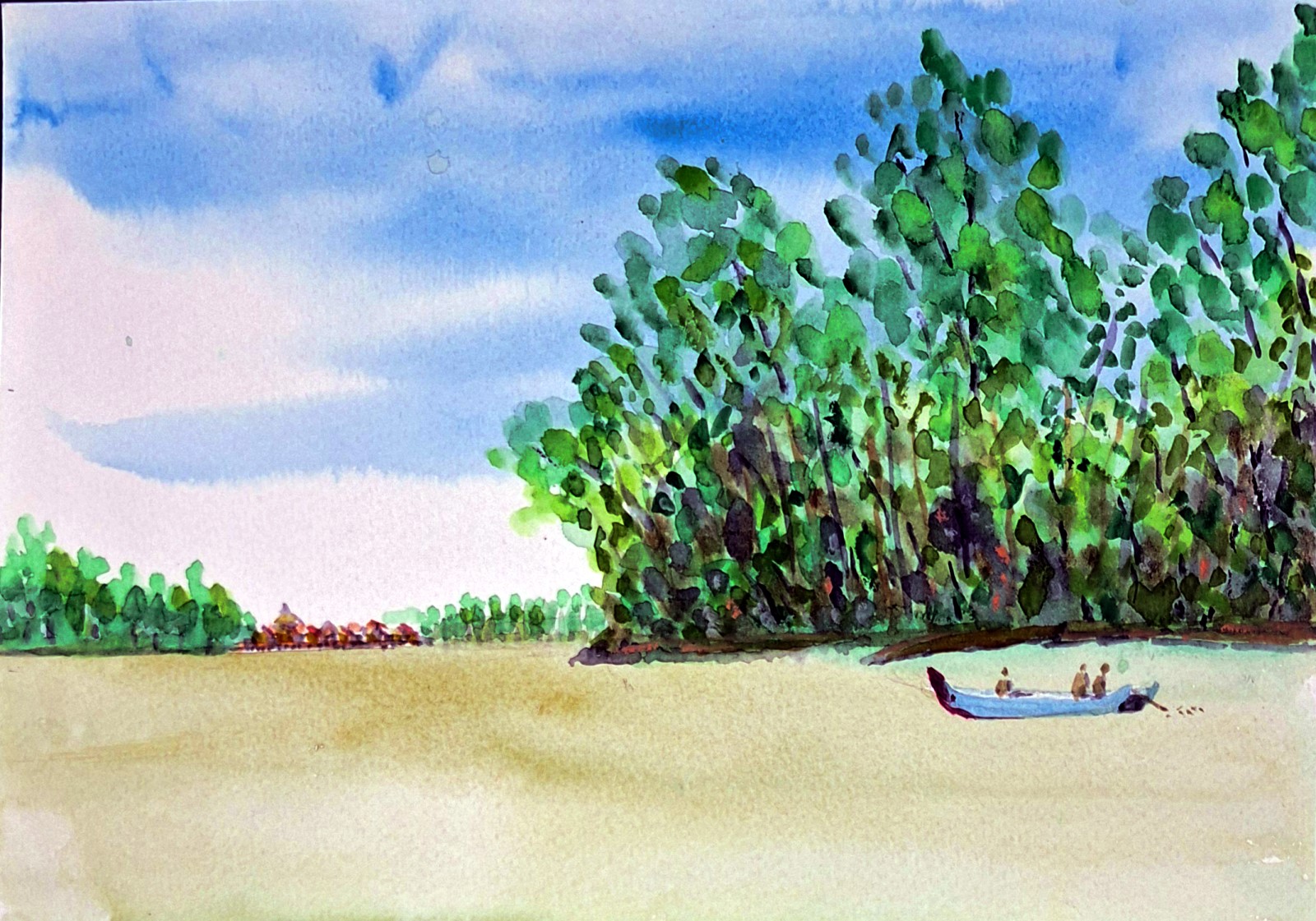午後的陽光灑在水面上,閃爍著銀光,樹葉濾出斑駁的影子。偶有一陣海風送來鹹味,混著樹皮與泥土的氣息,讓人感覺這裡的自然仍保有最原始的節奏。漁民的木船緩緩駛過紅樹叢間,船上堆著捕回的魚籠,海鷗在空中盤旋,偶爾俯衝捕食。