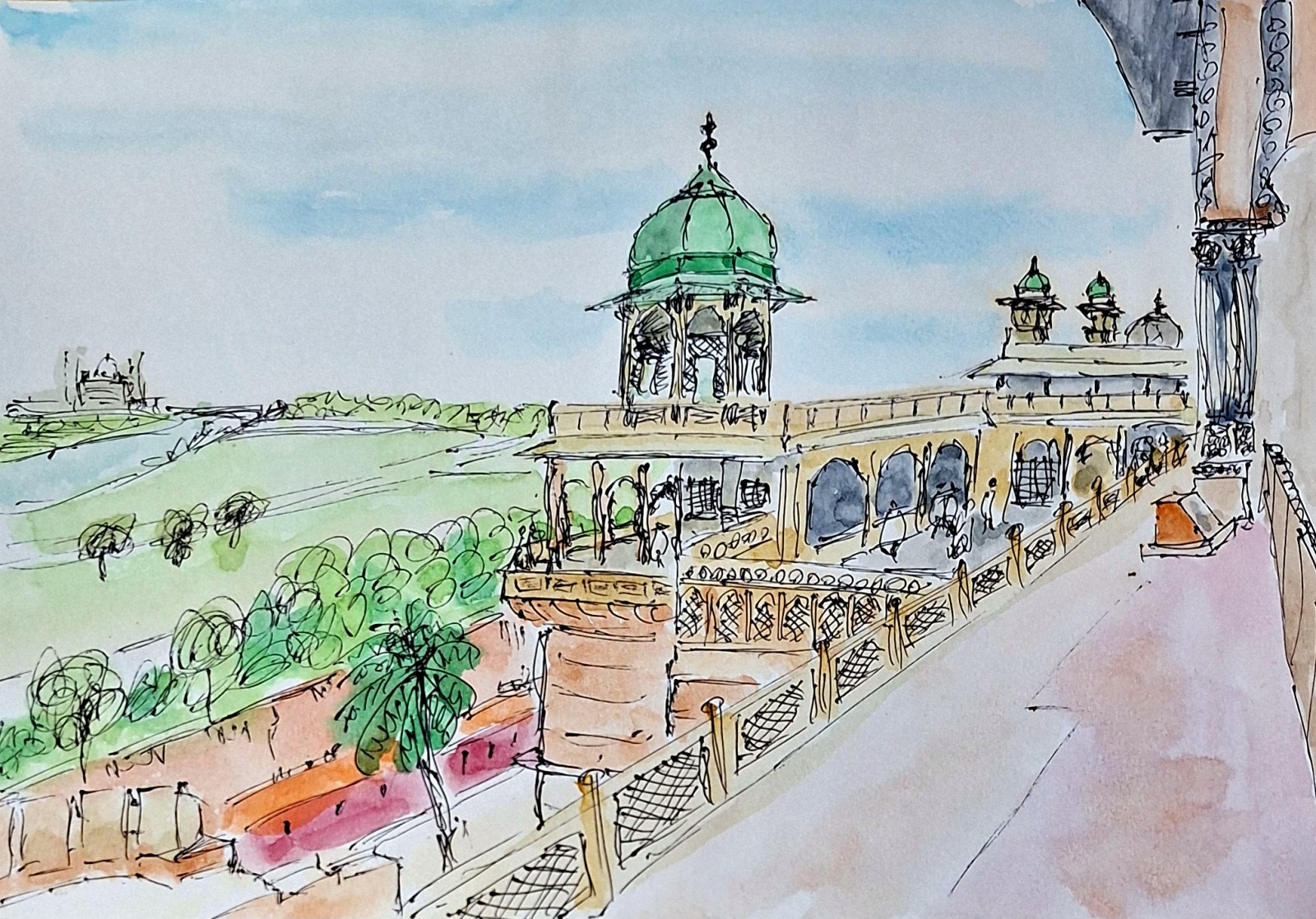 街頭速寫:印度阿格拉紅堡白宮遠眺泰姬陵