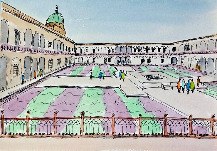走進紅堡的內廷時,彷彿踏入一個靜默而流動的歷史深井。厚重的紅砂岩城牆瞬間隔絕了城外的喧鬧與車聲。