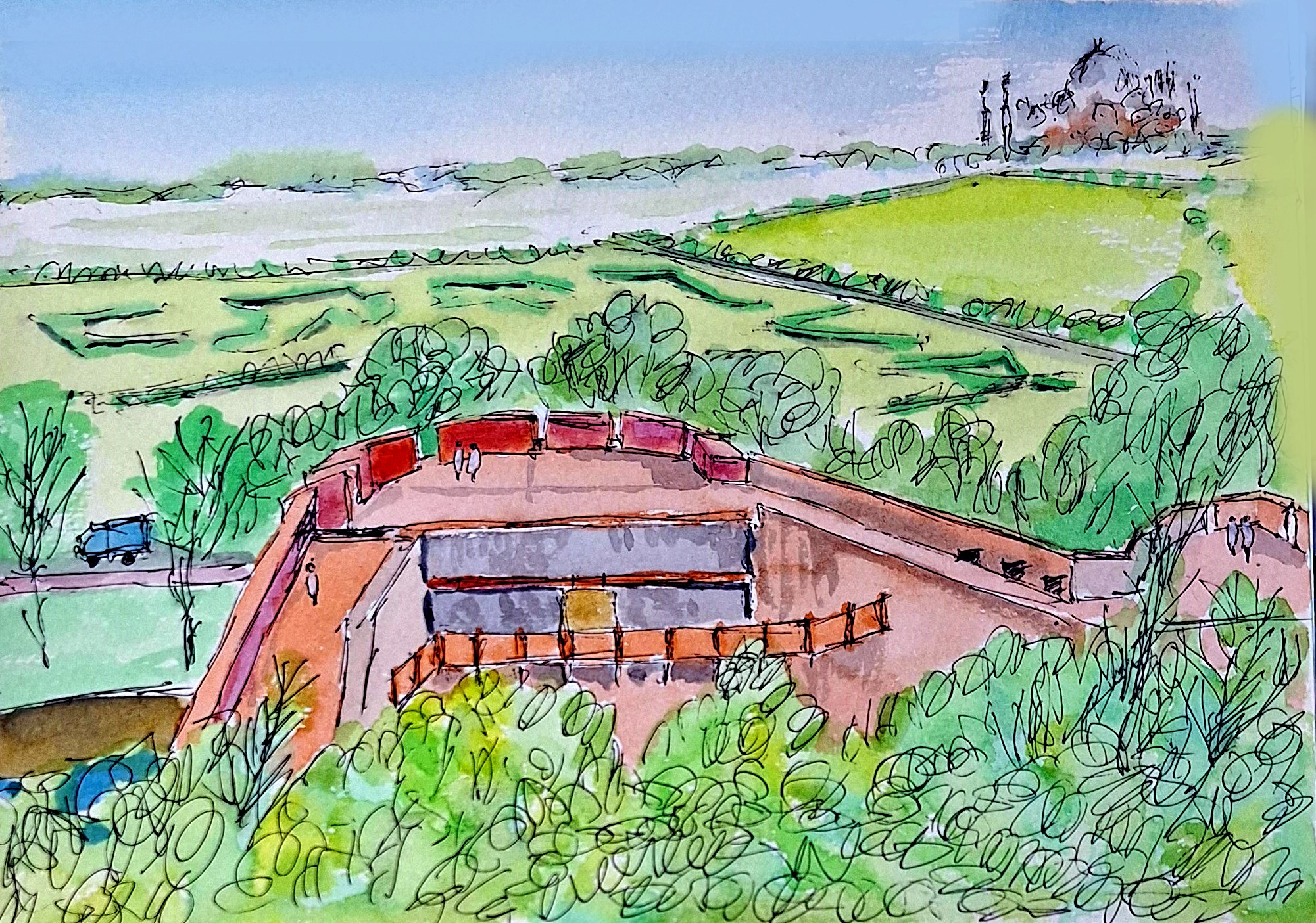 一隻烏鴉停在牆頭,高傲地俯視著街道,像一名黑衣的守衛。遠處傳來清真寺的宣禮聲,悠長而深遠,在熱氣蒸騰的空氣裡迴盪。此刻,紅堡不再只是歷史書上的名稱,而是一個活著的存在——它站在時光的交界,無聲地看著世人匆匆來去。