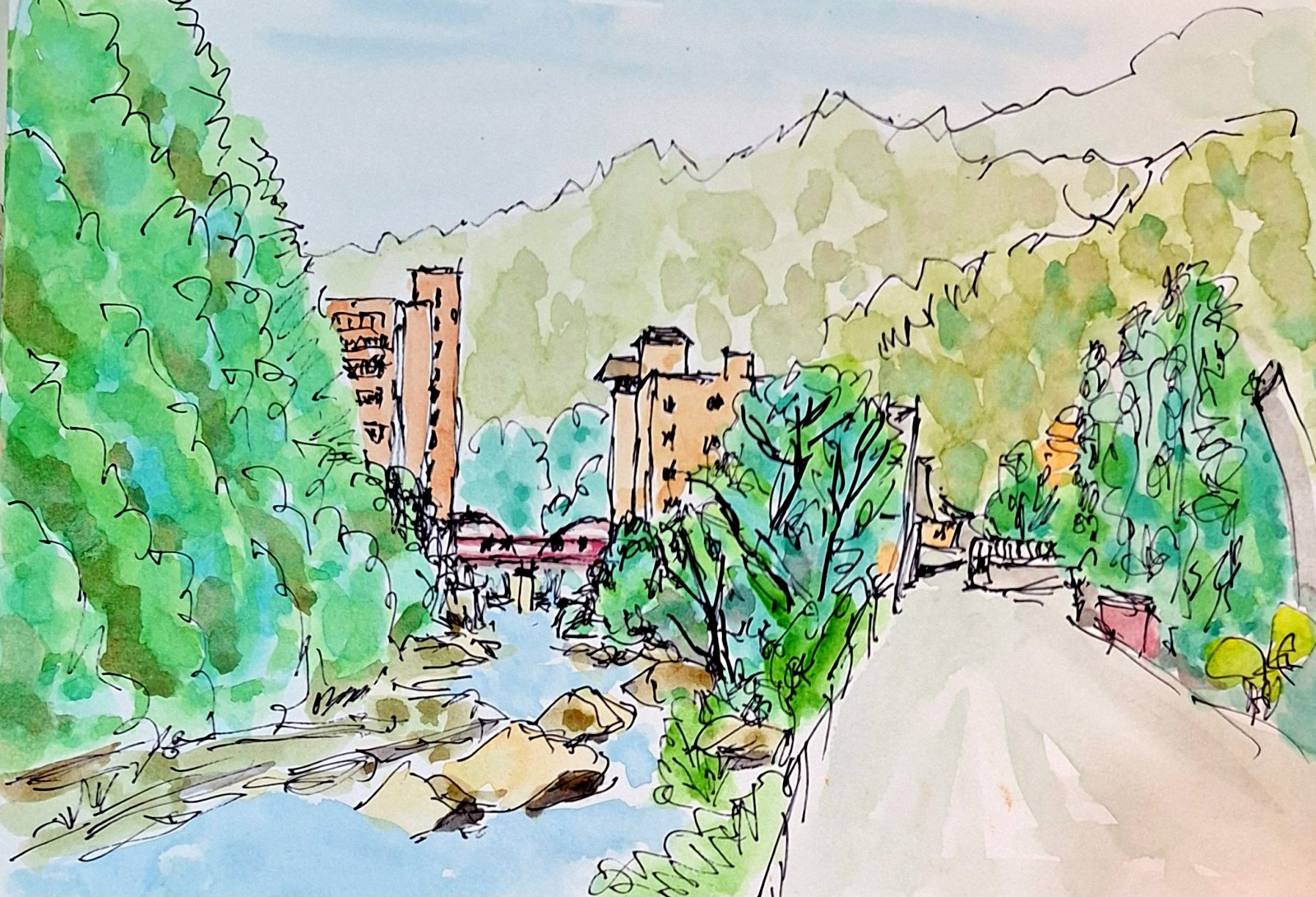 街頭速寫:日本秋田湯瀨溫泉一溪一道