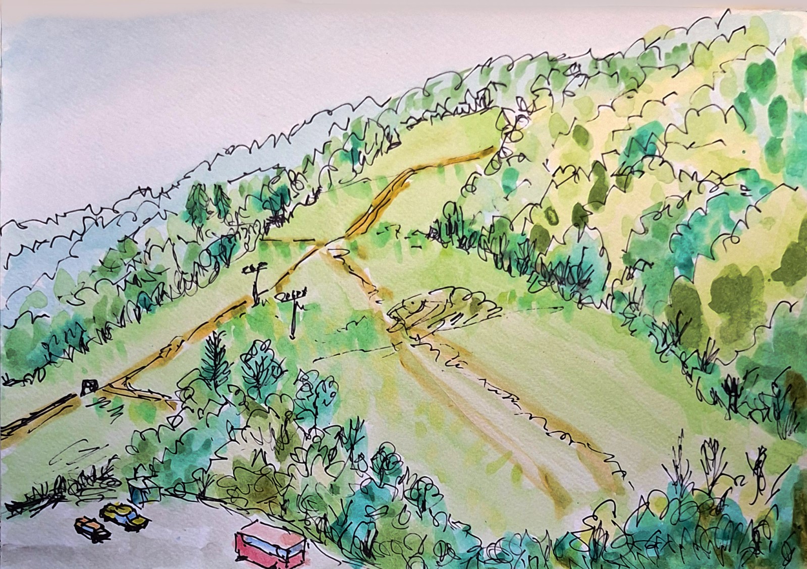 中午時分,雲朵在山頭緩緩飄過,陽光變幻,光影在山腰與樹梢之間遊走。若是抬頭看天,深藍之上偶爾點綴幾朵白雲,就像大自然的油畫。一陣微風吹過,窗外的松樹沙沙作響,彷彿在輕聲呼喚。整個世界在這一刻既靜謐又充滿生命力。