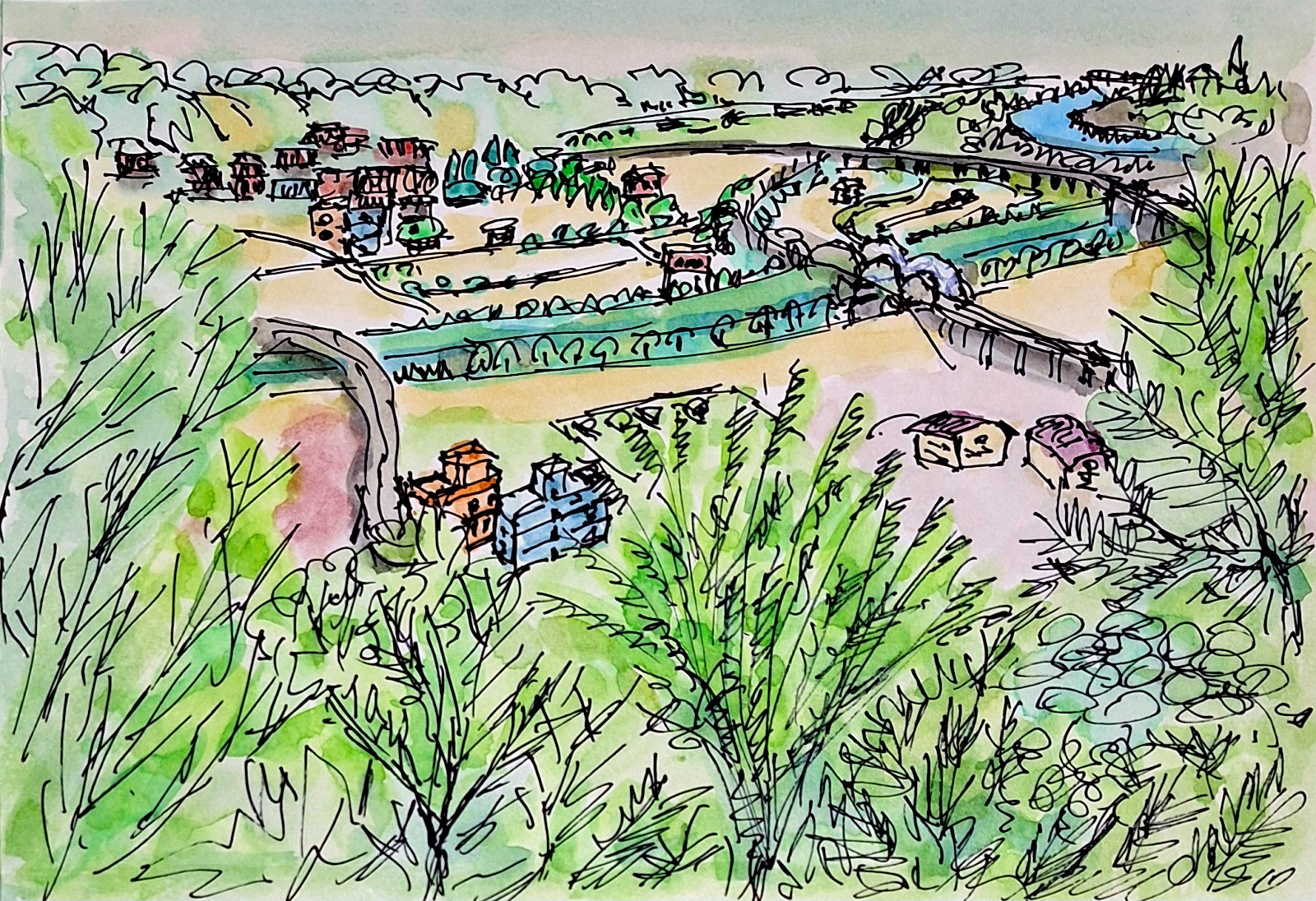 我在田埂旁停留了一會兒,只是靜靜看著這片遠方的景色。中島的田野沒有都市的喧囂,也沒有過多的人工裝飾,只有土地、稻穗與自然的節奏。這種簡單而純粹的景致,讓人能夠暫時忘掉時間與煩憂,感受到最樸實的生活氣息,也讓這片遠眺的田野在心裡留下深刻的印象。