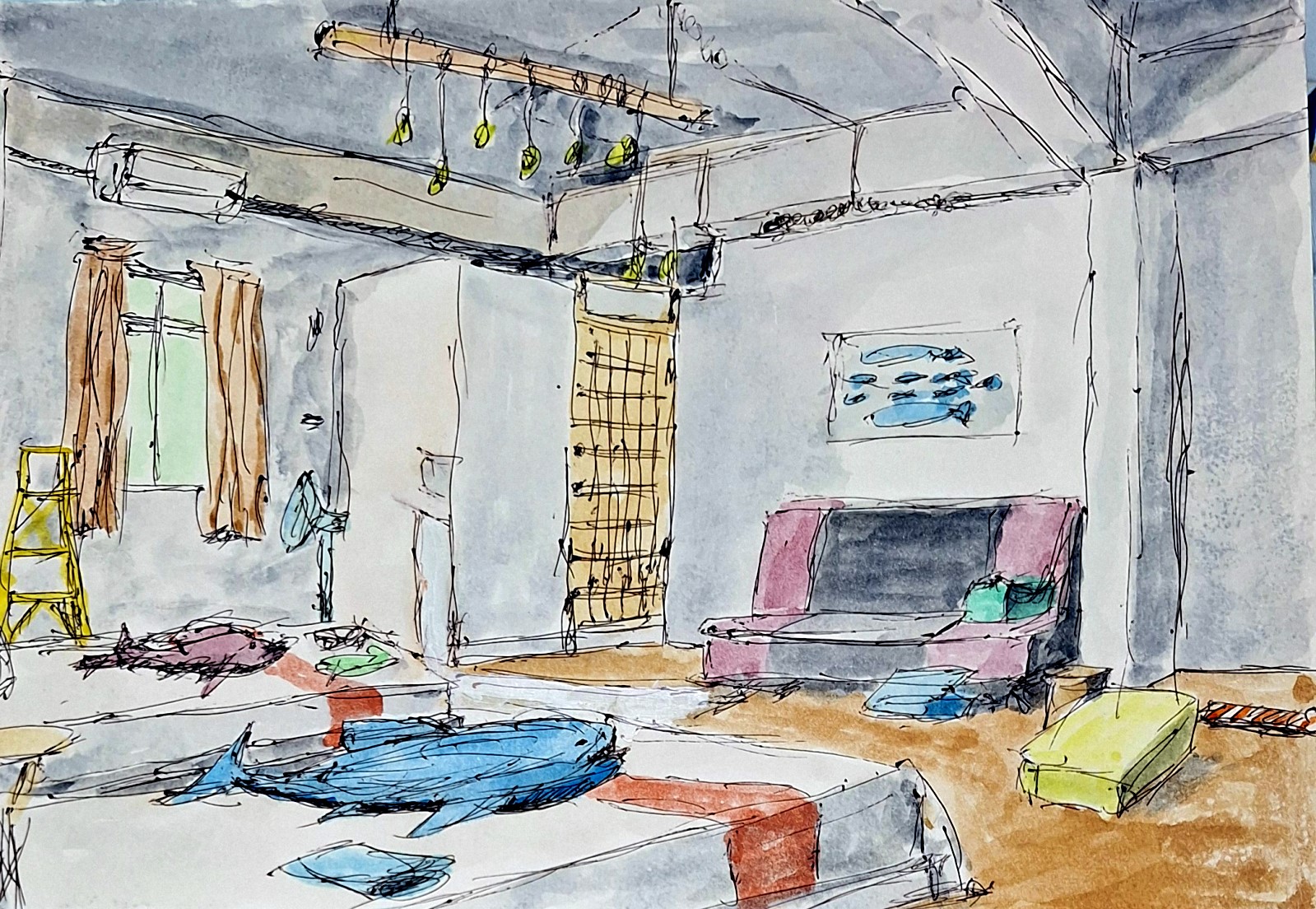 畫到一半,我停下筆,看著眼前的一切。這間民宿沒有壯麗的景色,卻有一種讓人安心的日常感。或許真正值得記錄的,不只是建築本身,而是那些被時間輕輕包裹的片刻。