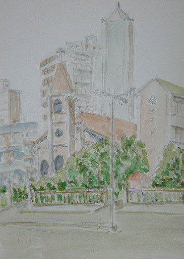 這是在愛河邊的教堂, 保祐著高雄的市民, 高雄也有好多廟, 真該畫畫的, 有機會的!!!