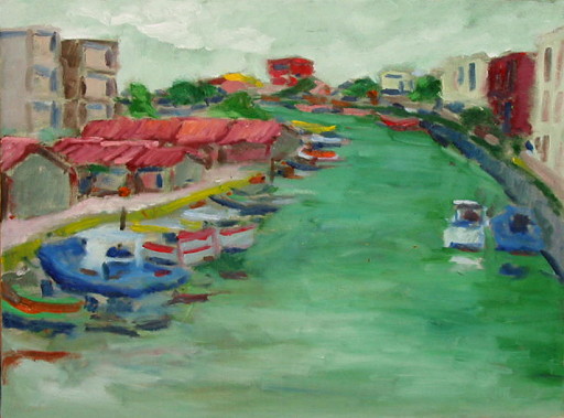 在港邊的橋上往下望, 有類似威尼斯的風情, 當然差距還是很遠, 總算聊勝於無. 畫下來囉!!!