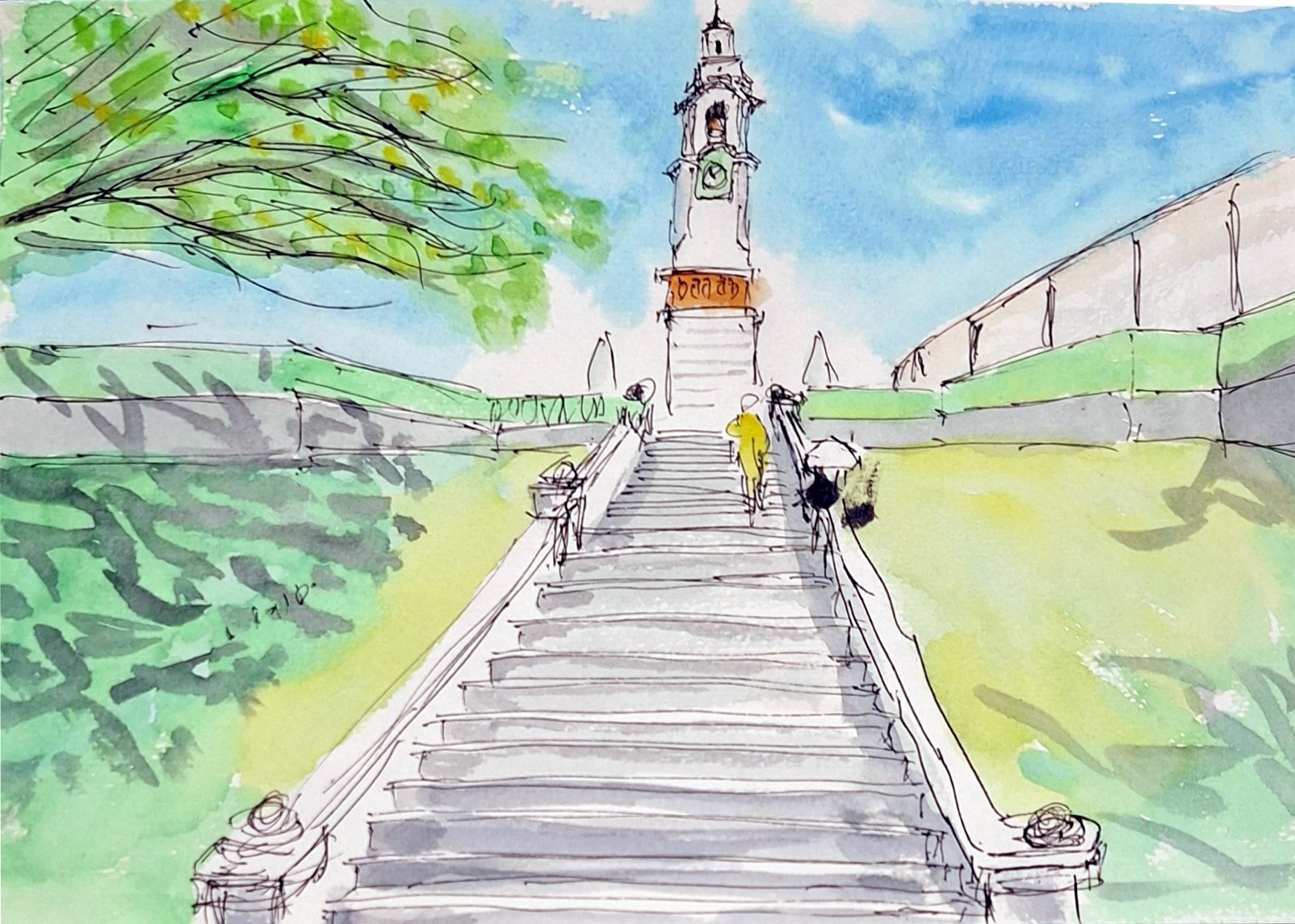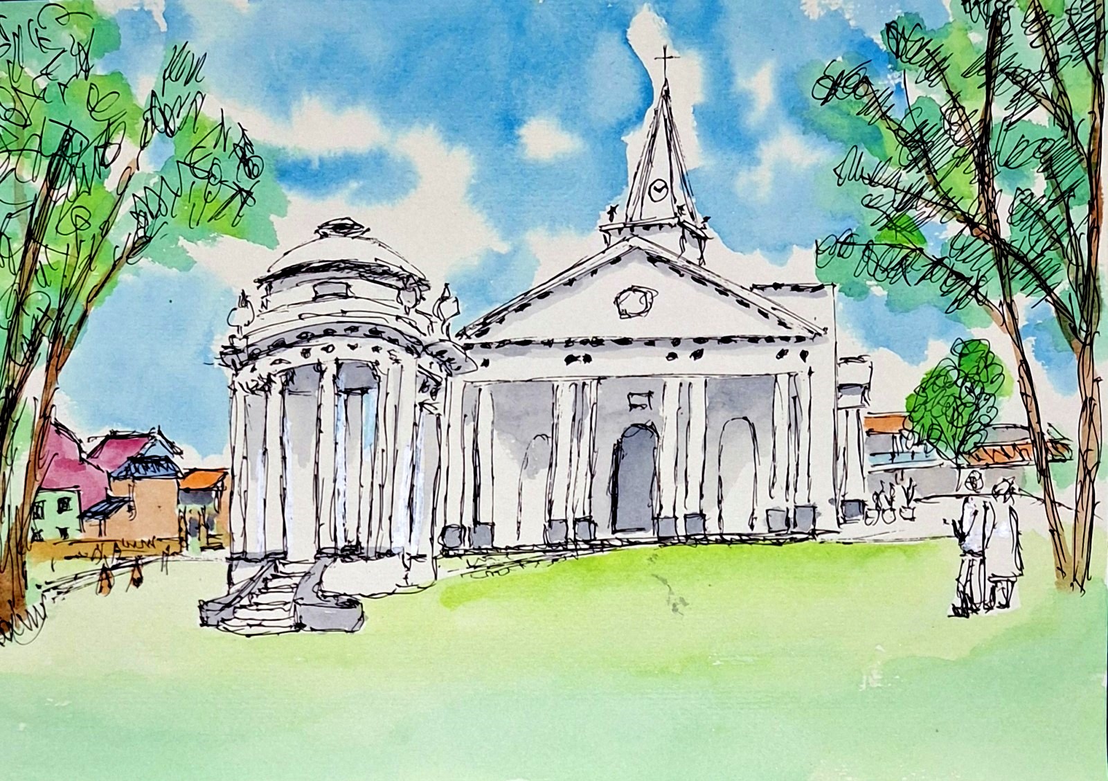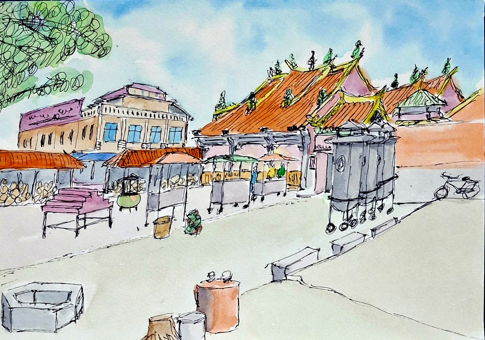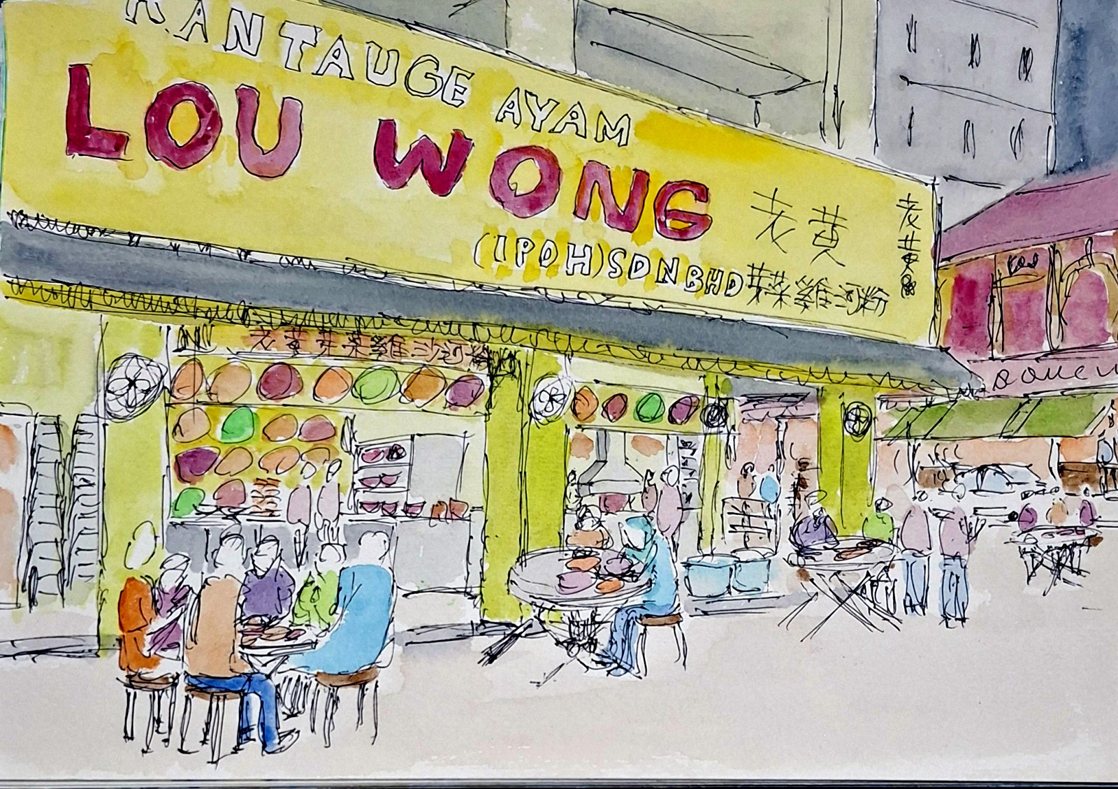 那天在怡保旅行,車子停在柚子休息站。我沒有急著買水果,而是被休息站後方的一角景色吸引。走過去一看,竟是幾座不同的寺廟靜靜坐落在綠林之間。 我拿出速寫本,當下就想把這片風景記錄下來。前面是一片草地,線條...