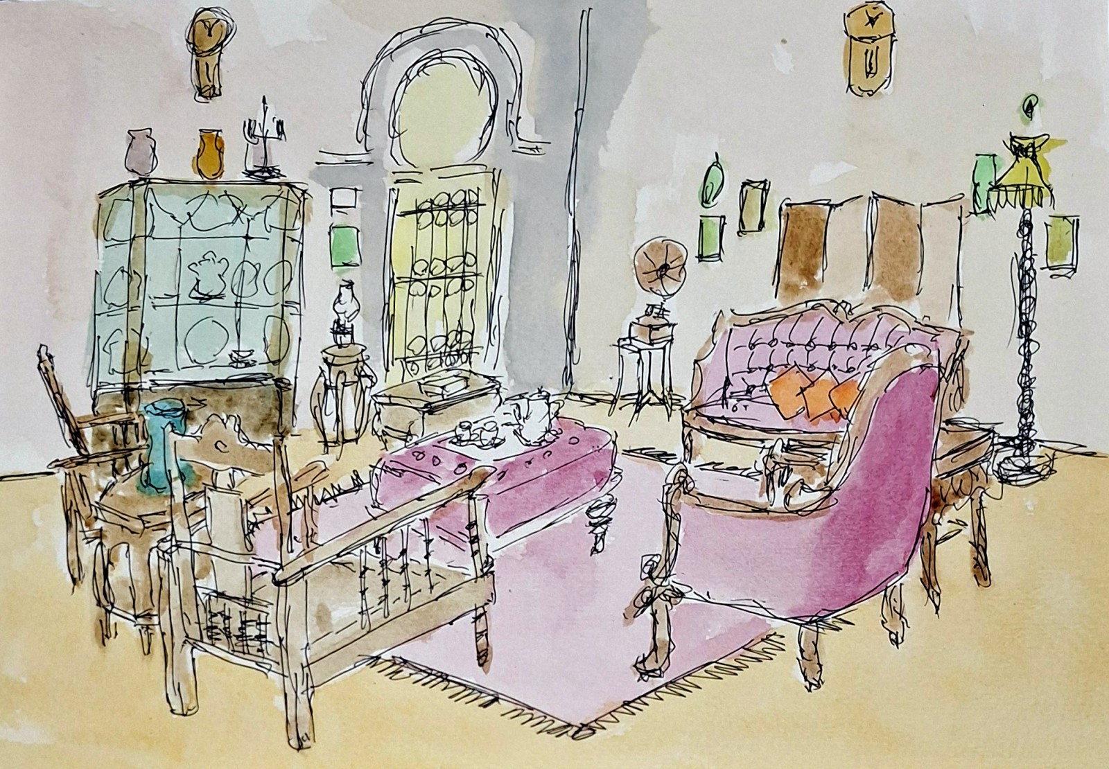 走進凱利古堡,穿過斑駁的走廊與高聳的拱門,來到一處寬闊的客廳。這裡的牆壁雖已褪色斑駁,卻依然能想像當年華麗的樣貌。高大的窗戶迎來午後的光,斜斜灑在石磚地上,彷彿一張泛黃的底片,把時光定格在這裡。 客廳...