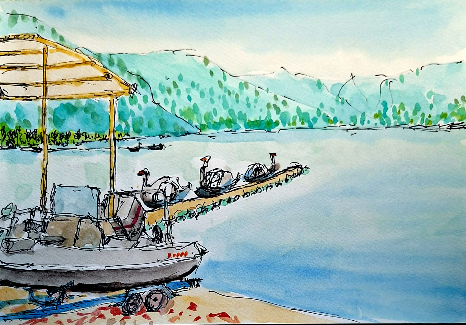 清晨的寶仙湖,被一層薄霧輕輕包裹著,像是一幅尚未完全甦醒的水墨畫。遠方的群山靜靜佇立,線條柔和而含蓄,倒映在湖面上,彷彿天地之間正在進行一場無聲的對話。 湖水呈現出深藍與翠綠交織的色彩,隨著陽光慢慢升...