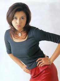 話說小新媽咪剪了"廣告"中藤原紀香的頭(下左),回家後,小新比對藤原"寫真集"中的髮型(下右),覺得後面不夠短,偷偷趁媽咪午覺時幫忙修剪,結果把媽咪後腦勺剪禿了塊,最後當然是挨頓痛打。(奇怪了,咱家這小傢伙老愛拿我去比小新的媽@@")