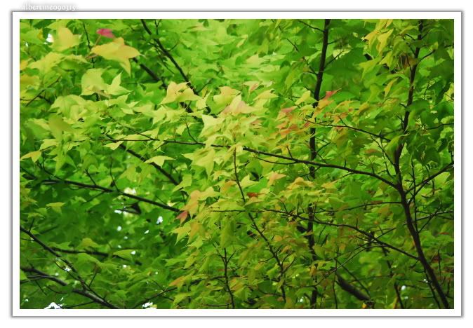 然而,於我,"純粹的綠"並不能真正展現色彩的神奇。當落入眼框的綠深淺交錯,或是新舊層疊,或是惹黃染紅,或是暗影浮動,反而更富意趣。