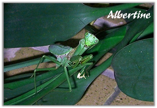 這種螳螂還不是最漂亮的,我家山屋前陣子來了一對白螳螂,我沒有查它的祖宗八代祖譜,但牠好漂亮,生了一堆小可愛。可惜後來不知被鳥兒吃了或覺得我家住煩了搬家別處,很久沒有看到它們的蹤影。