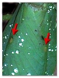最後,在同為綠色小樹苗上感到安心些,螳螂終於稍事休息,瞪著一雙大複眼打量我,很不高興的樣子。我看著它大大的肚子,虎背熊腰,全長達9-10公分,猜測應該是中華大刀螂的雌蟲。(哈,猜錯應是寬腹請見最下圖,經小王子指正將影像放大才找到兩個小暗點,應該是年紀大,不夠白,肉眼難見)