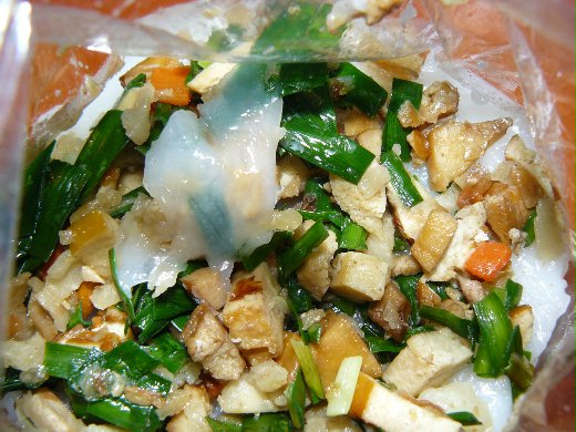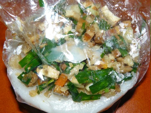裡面包的是蘿蔔絲、小豆干丁、蝦米(好像看到一隻)、