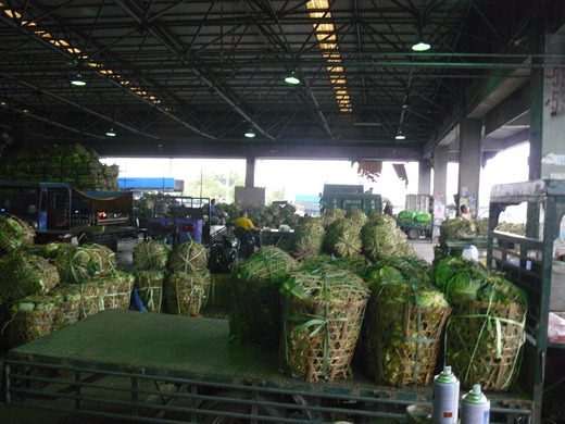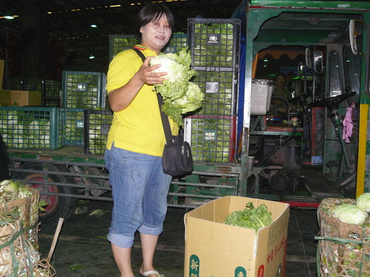滿坑滿谷的整簍高麗菜馬上又被分送轉運出去,