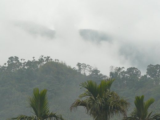 帶著霧氣的山嵐環繞在山區、在林木之間,