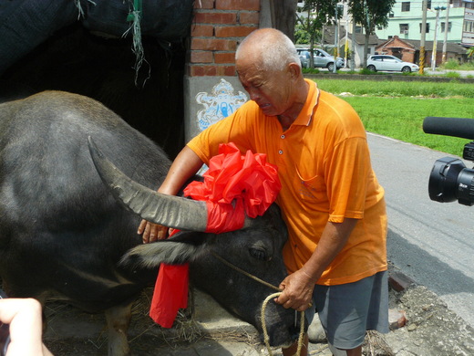 不自禁地把牛拉近身上抱著頭頸大哭,