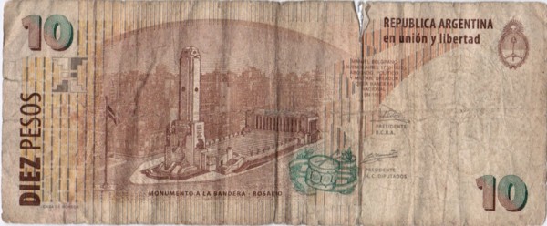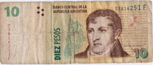 十比索的阿根廷紙幣上的圖像是曼努埃爾·貝爾格拉諾,被認為是阿根廷的「解放者」。