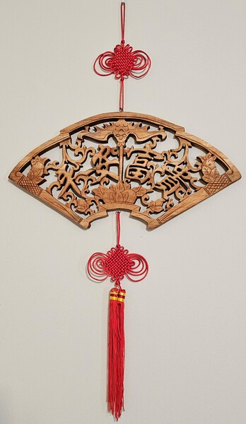 在我即將退伍的前夕,鄭行政士送我這塊木雕掛飾,以感謝我對他的支持與照顧。我本不欲接受,但他告訴我這掛飾雖是精美,卻很便宜。他再三強調禮輕人意重,並衷心祝願我未來能平安富貴,我於是笑納了他的好意。睹物思人,幾經思量,不捨丟棄,最終還是在新居裡找出一片牆作為這木雕掛飾的安身之地。如今,與鄭君分別已逾四十載,未曾再聯繫。韶光荏苒,青春難再,不勝唏噓,只希望鄭君也能平安富貴。