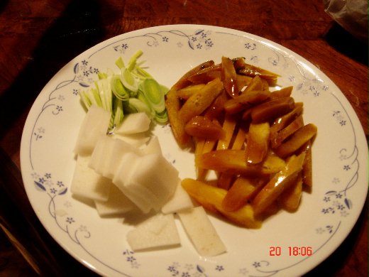 南部人辦桌,一定少不了這一道菜色,但都斜切薄片,像SUSAN這樣切厚厚的,在宴客場所是異想天開的事,只有自己在家吃才可能這麼奢侈,烏魚子貴啊~~