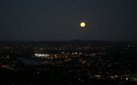 上山時月亮剛從山巔冒出來,乍看之下還以為太陽落到東邊去了呢!