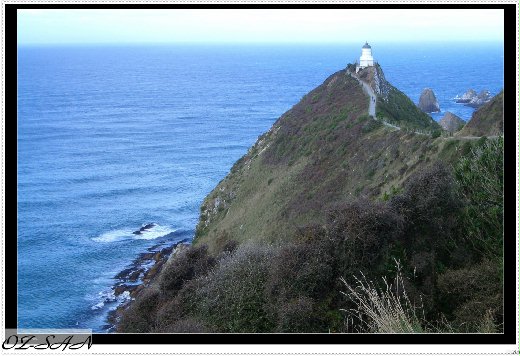 把納吉特岬角(NUGGET POINT)列入這次南島行的重點,是無意中在網路上看到一張納吉特岬角的空照相片,一座白色的燈塔,孤零零的挺立在一道狹長的岬角山上,四週湛藍的海水拍擊著岬岸的礁石,激起一朵朵白色的浪花........。
