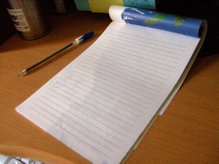 因為整理房間發現空間不夠的關係,決定把一半的信紙都拿來寫掉,只須留下信套組。當初傻傻地買了信紙本,不料被電腦鍵盤寵壞了,現在提筆寫不到四張(還故意留了很多空白)就快寫不下去啦!老一輩的作家是一點一點地爬格子的,想到我還沒拿稿紙來寫,只是寫信給朋友就寫到像鬼畫符,以前還算漂亮的字再不復見,身為這隻手的主人真想痛哭一場,看來我該從中楷字重新練起了。