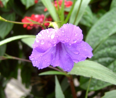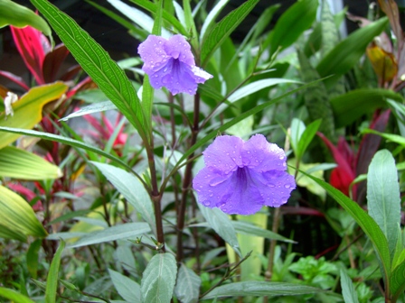 下午去超商領了CD後,騎車回家路上又發現了巷子裡有人家有漂亮的花,剛好才停雨不多久,這時候花葉上都還有殘雨,馬上就回家拎了相機來拍,平常沒注意到電線杆腳下其實也有一叢叢的小花,騎車經過會以為是普通的矮草吧!