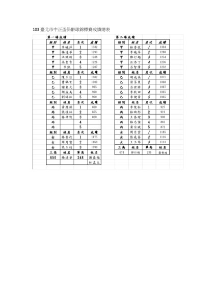 103臺北市中正盃保齡球賽9/14-15成績總表~正確版