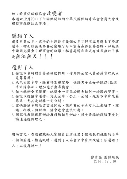 致中華民國保齡球協會全體會員~懇請支持我的團隊!!
